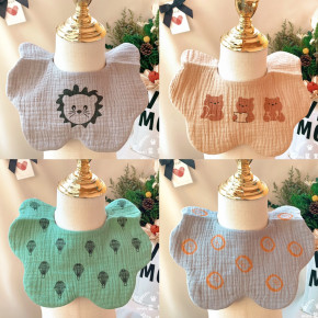 春夏纯棉纱布围嘴花朵造型婴儿围兜柔软吸水透气宝宝口水巾3条装