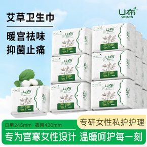 U布艾草卫生巾日用夜用组合超长加长加宽护垫暖宫抑菌超薄姨妈巾