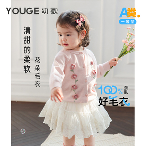 【阿克苏好棉】幼歌婴幼儿春季甜美开衫可爱手工立体钩花圆领毛衣