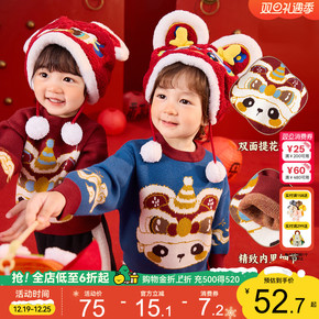 嘟嘟家儿童毛衣女童拜年服宝宝演出服冬季衣服男童红色新年唐装
