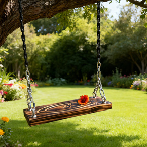 实木防腐木碳化木秋千铁链户外坐板秋千户外儿童荡秋千悬挂秋千板