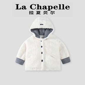 拉夏贝尔童装女童羊羔绒外套2025冬装新款儿童连帽保暖毛毛上衣潮