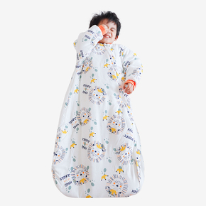婴儿睡袋秋冬夹棉宝宝长袖一体式加厚睡衣新生儿拉链式功能防踢被