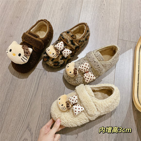 卡通毛毛鞋魔术贴加绒保暖单鞋2025冬季新款韩版内增高棉鞋豆豆鞋