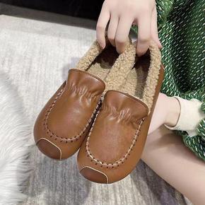 牛筋底一脚蹬加绒加厚雪地靴女防水皮面加厚防滑保暖豆豆棉鞋