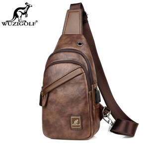 彬澳袋鼠双层男士胸包男包时尚休闲单肩包斜挎包韩版胸前小背包潮