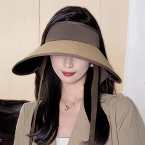 大帽檐防晒帽女夏季草编空顶遮阳帽防紫外线护颈披肩太阳帽可折叠