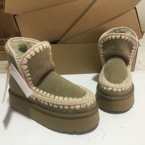 MOUU雪地靴爱斯基摩雪地靴女皮毛一体厚底短靴4.5㎝保暖女短靴