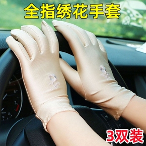 春秋薄款刺绣手套礼仪跳广场舞冰丝透气防晒弹力骑行开车女士手套
