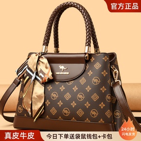 袋鼠品牌真皮包包2025新款大气送妈妈牛皮手提包时尚中年斜挎女包