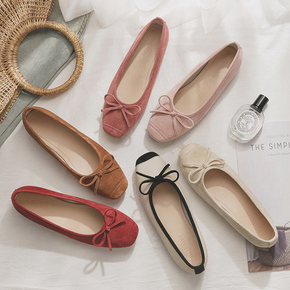 羊皮版~晚晚温柔风芭蕾瓢鞋浅口平底配裙子的法式气质红色单鞋女