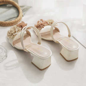 羊皮版~花朵晚晚高跟配裙子仙女风法式绝美小凉鞋女2024新款夏季