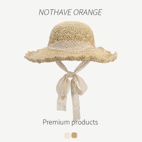 日系夏季沙滩帽蕾丝草帽女小清新防晒帽遮阳旅游度假可折叠太阳帽
