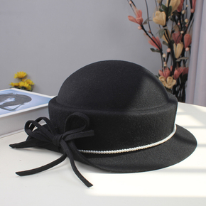 全羊毛蝴蝶结小礼帽女生秋冬高级感气质千金帽黑色赫本风毛毡帽子