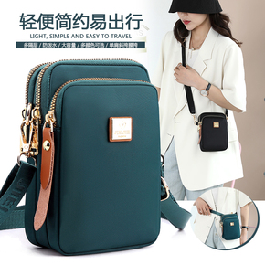 手机包女小巧妈妈款零钱包牛津布散步单肩小包休闲三层帆布斜挎包