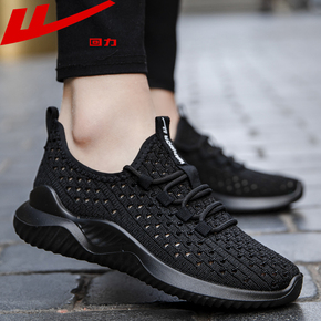 回力女鞋夏季透气网鞋镂空网面休闲跑步运动鞋黑色软底防滑工作鞋