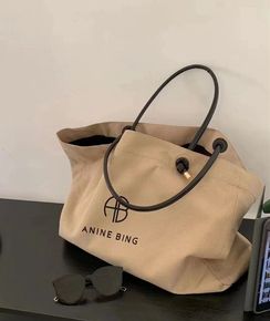 ersan苏悦同款字母印花大容量托特包度假棉麻帆布包单肩包手提包