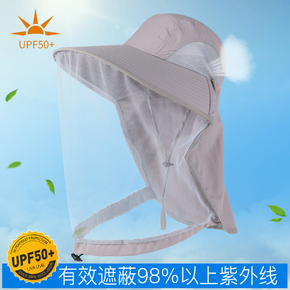 钓鱼防晒帽子夏男女防紫外线遮阳渔夫帽防蚊虫网纱面罩登山太阳帽