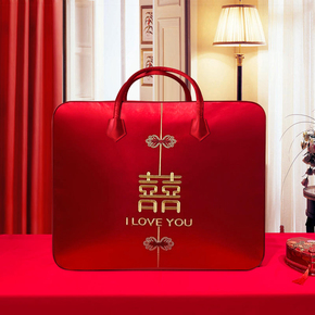 婚庆四件套红色喜被装棉被的包装袋子缎面喜庆手提结婚陪嫁收纳袋