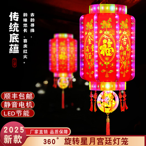 2025新中式七彩LED旋转灯笼节日喜庆挂饰阳台飘窗宫灯冬瓜灯一对