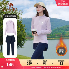 骆驼运动套装速干透气春秋休闲加绒立领上衣瑜伽健身假两件九分裤