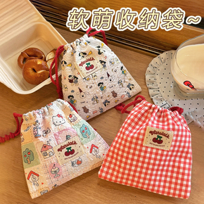 抽绳束口袋可爱樱桃收纳袋棉布化妆收纳包外出旅行姨妈巾布袋小包