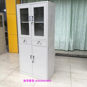 铁文件柜资料柜铁皮财务柜文员柜文案铁皮柜带抽屉落地玻璃双门柜