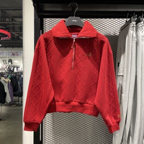 李宁卫衣女子春季日进斗金新年红色宽松翻领运动服套头衫AWDU048