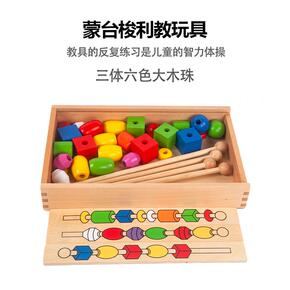 蒙台梭利蒙氏教具串珠盒三体六色大木珠1-3岁儿童智力早教玩具
