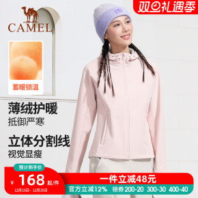 骆驼瑜伽服男女款秋冬季加绒运动服连帽外套防泼水防风户外软壳衣