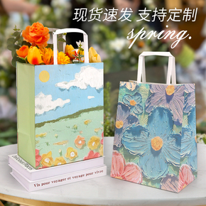 牛皮纸袋手提袋打包袋外卖餐饮咖啡烘焙商用包装春天礼物袋子定制