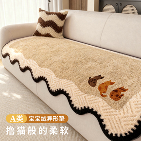 复古极简风冬季新款异形毛绒沙发垫一片式固定防滑直排沙发坐垫子