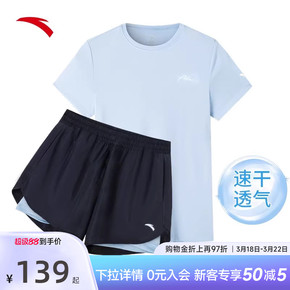 安踏运动套装女夏季2026女装短袖女士跑步健身速干短裤训练两件套