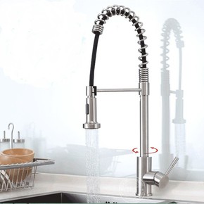 SUS304不锈钢弹簧抽拉式伸缩厨房水龙头拉丝冷热洗菜盆花洒
