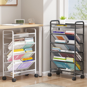 书桌旁小书架落地置物架可移动带轮书本收纳架子课桌边简易整理架