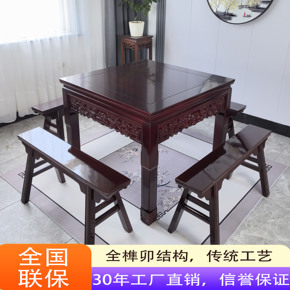 中式仿古八仙桌家用四方桌实木饭店桌凳组合灵芝正方形面馆快餐桌