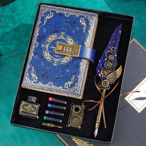 复古机械真羽毛笔哈利波特钢笔密码带锁日记本手帐本礼物礼盒套装