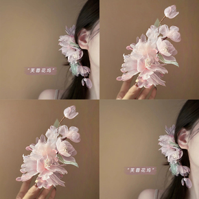 纯欲粉!超仙日常绢纱花朵发夹!时尚侧边夹盘发器宫廷风汉服配饰