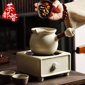 可干烧烤茶罐侧把粗陶煮茶壶日式电陶炉炭炉围炉罐罐白黑普洱茶壶