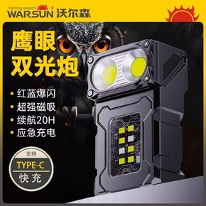 沃尔森强光手电筒猫头鹰led工作灯汽修维修灯户外照明强光磁吸式