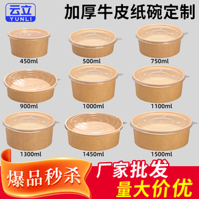 一次性牛皮纸碗圆形水果沙拉碗打包盒加厚餐盒带盖卤肉饭外卖纸碗