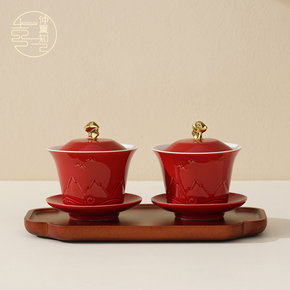 仲夏知己改口敬茶杯套装一对结婚对碗筷红色喜碗陪嫁订婚敬酒杯子