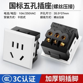 奎神电力 国标桌面机柜小5孔品字嵌入式电源插座卡式二三插孔10A