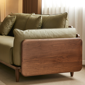 北美黑胡桃木沙发布艺实木复古小户型客厅真皮沙发原木直排四人位