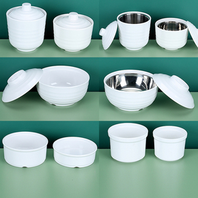 A8仿瓷餐具带盖碗泡面碗塑料大碗白色密胺汤盅商用蒸蛋炖盅炖汤碗