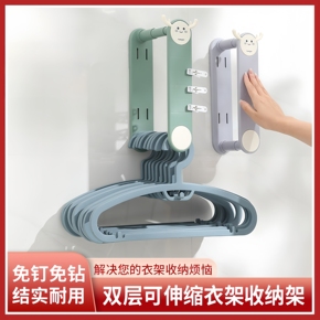 衣架收纳神器免打孔阳台晾衣架挂杆伸缩壁挂墙上挂衣收纳架置物架