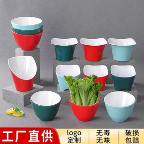 A5北欧密胺装蔬菜桶仿瓷生菜桶塑料青菜碗调料斜口碗自助火锅餐具