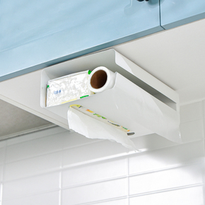 厨房专用纸巾架子悬挂保鲜膜袋收纳壁挂式免打孔橱柜下抽纸盒倒挂