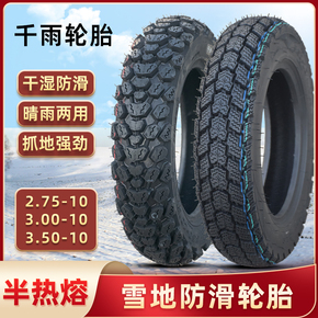 千雨3.50/3.00-10寸真空轮胎电动摩托车300半热熔雪地越野防