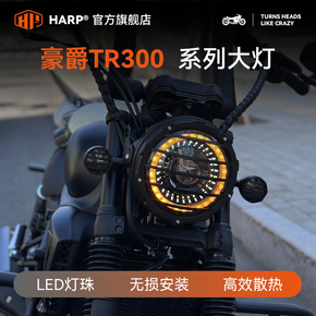适用于豪爵TR300大灯改装复古圆灯总成摩托车LED天使眼配件无损